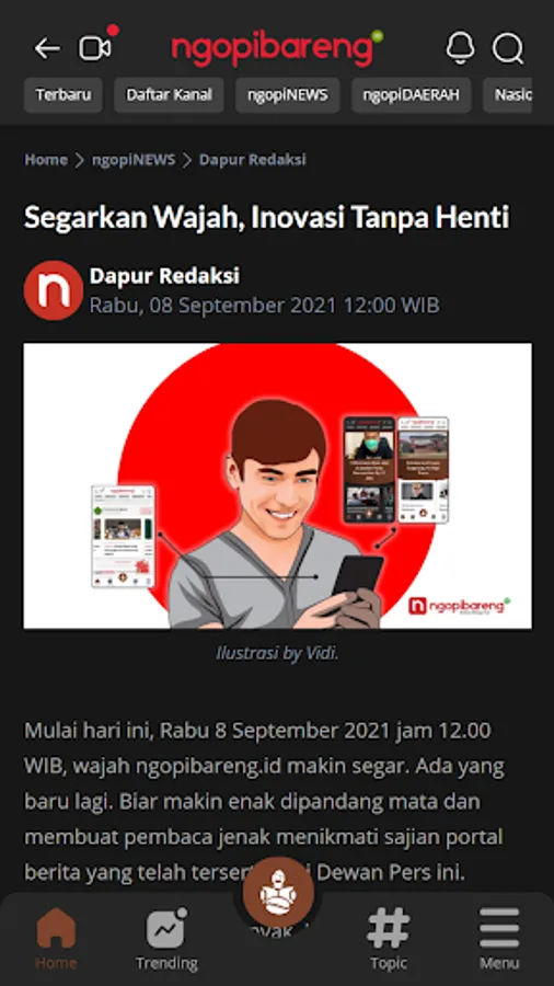 Ngopibareng is an online media or news portal headquartered in Surabaya. A colorful and trusted digital-based media.