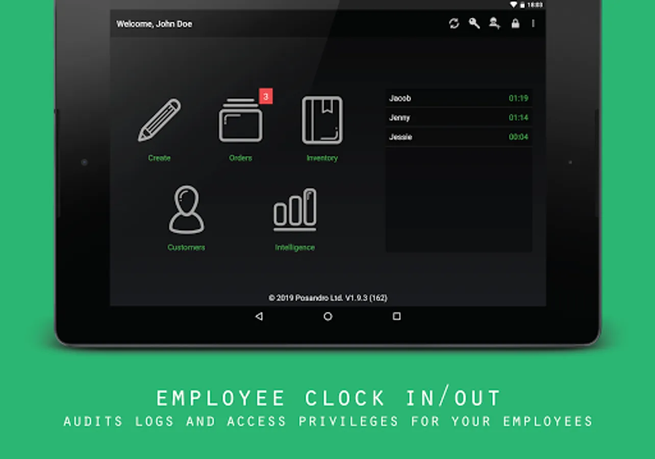Setup employees with access codes to login and restrict certain functionalities of the App. Allow your employees to clock in/out.