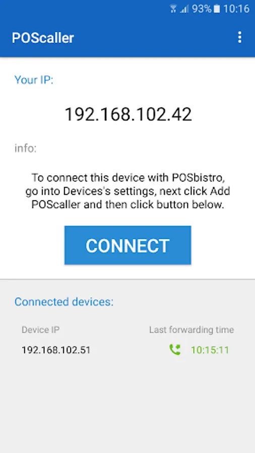 POScaller application only works with POSbistro sales system and is connected to the existing customer database created by the owner of the premises.