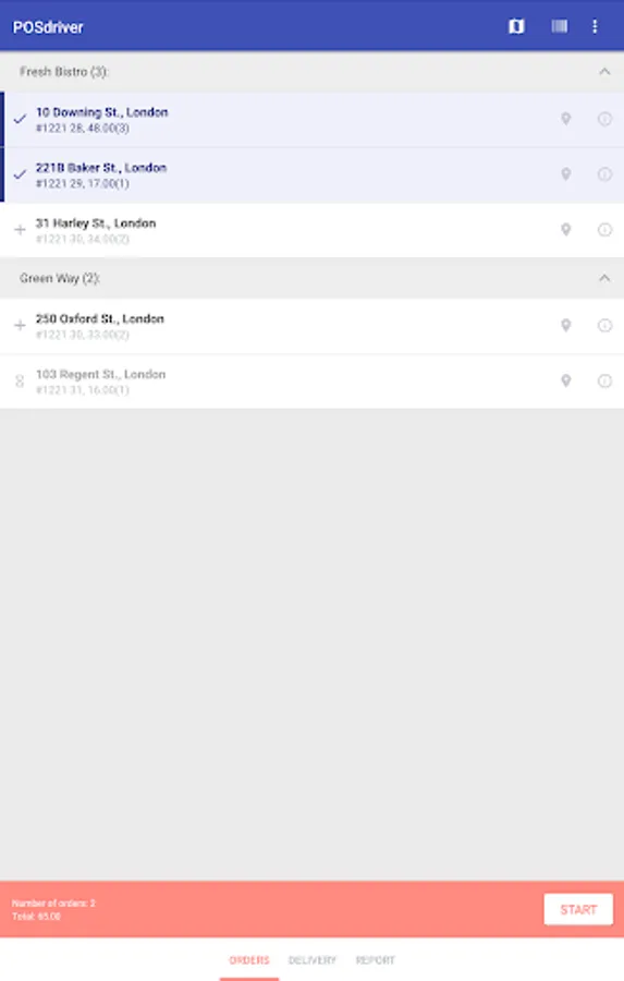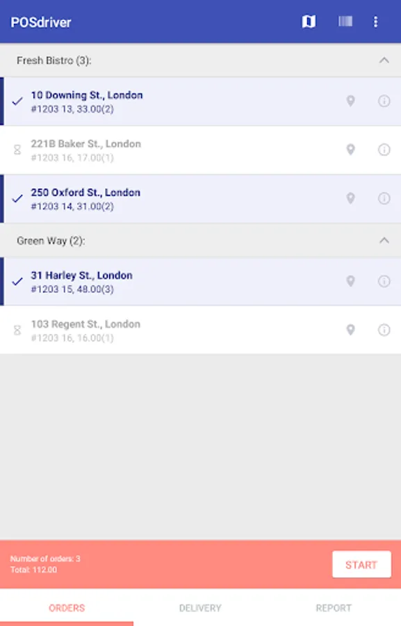 Taking orders for several locations at the same time - POSdriver app help you manage your deliveries in the most efficient way. One driver is able to handle multiple deliveries at the same time, giving you confidence that your driver’s time is being fully efficient and you save on extra costs.The application can also provide separate delivery reports for each location.