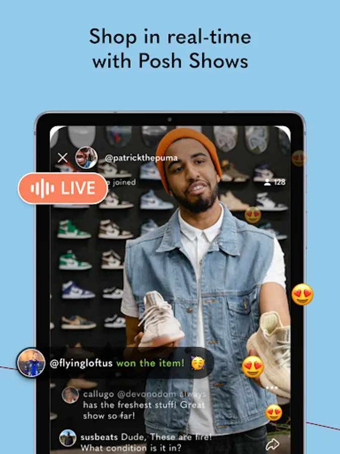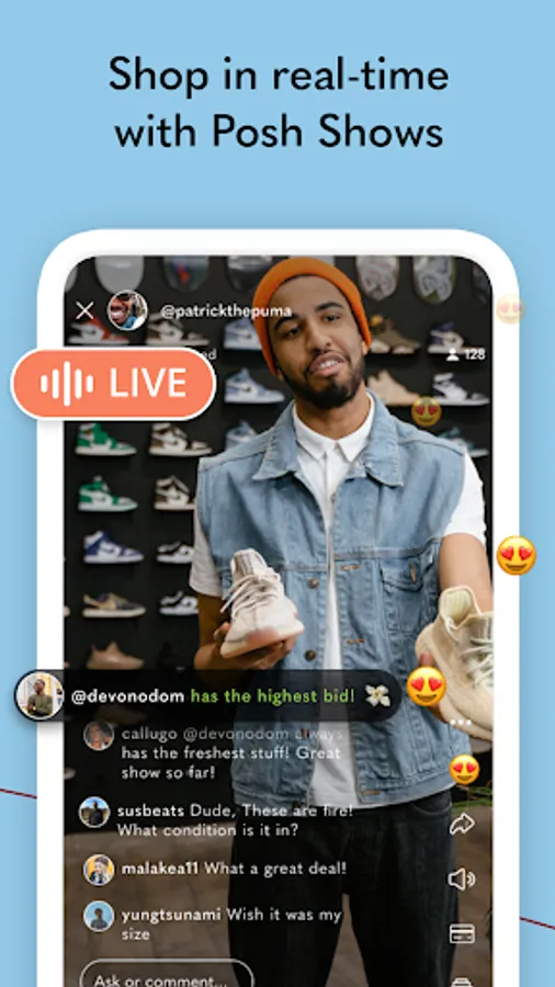 - Live sell clothing, shoes, accessories, or anything in between in Posh Shows and connect with your community.