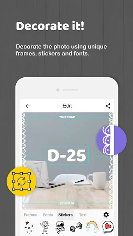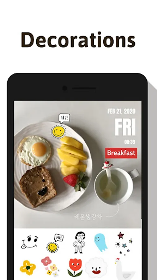 Add handmade stickers to your photos. Leave your mood at the time with pretty and cute stickers.