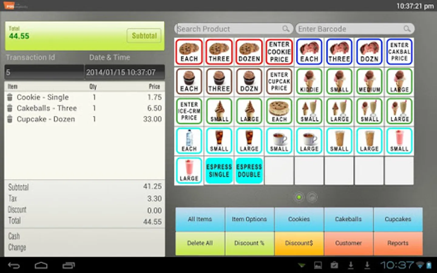 Once you are logged in touch one of the categories like "Bakery Items" listed on the bottom to display products you can use to test the functionality. Each category has different layouts so you can get a better idea of how you might set up your own system.