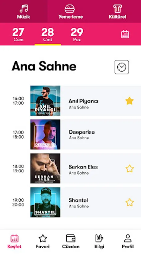 - reach the information about the musicians will be performing at the event and you listen to the music.