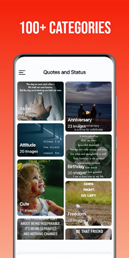 Quotes is your one-stop-shop for all your quote and status needs. With a wide variety of categories and thousands of quotes to choose from, you'll never run out of inspiration. Plus, create your own custom status updates to share with friends and family.