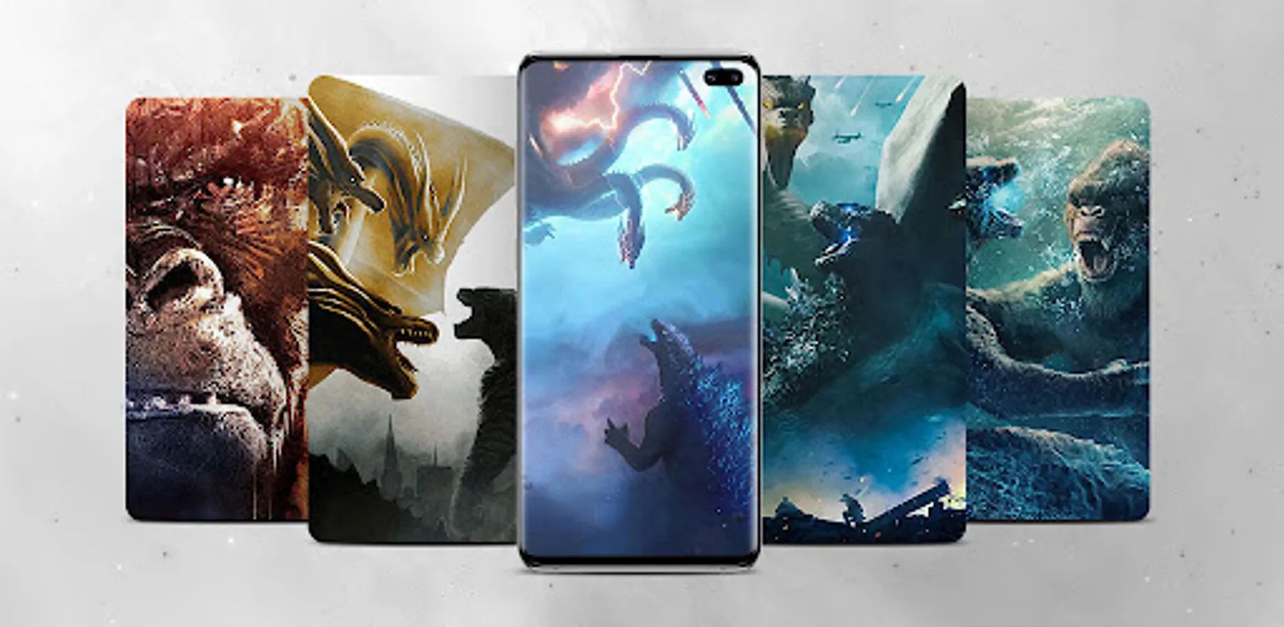 Godzilla vs Kong Wallpaper background app. You can find dozens of Godzilla vs Kong images to set as wallpaper or lock screen background. You can also download the wallpapers if you want. Live wallpapers included.