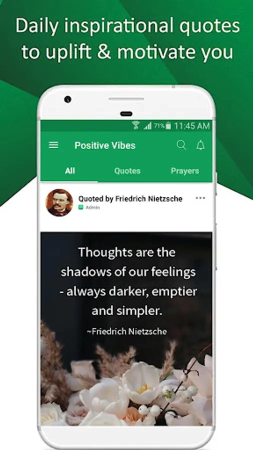 Positive Vibes helps to stay positive and consistent in tough times. Reading positive quotes everyday helps you to find hope and courage when you might feel down and hopeless. If you are willing to start your day with positive attitude and fresh mind, this app is for you.