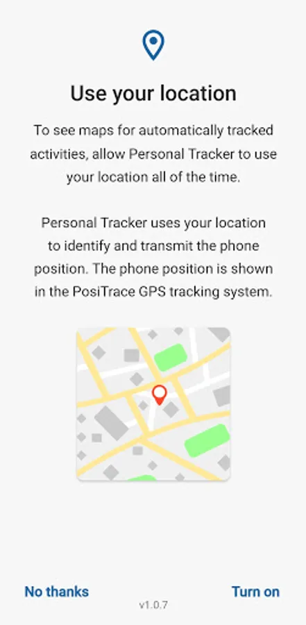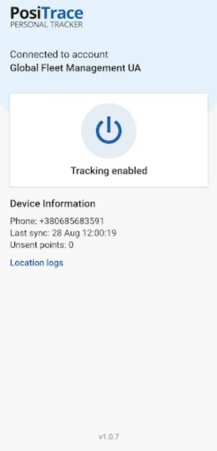When the tracking is enabled, the application constantly identifies and transmits the phone position. The location is identified in background and the phone position is transmitted when the application is closed. The tracking status is displayed in the curtain, it can be enabled/disabled in the app main screen.
