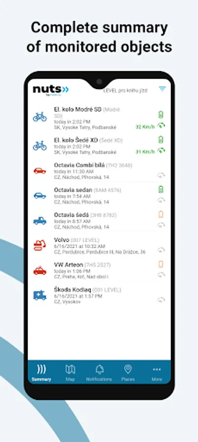 NUTS (Neeco Universal Tracking Solution) is a mobile application for on-line access to a cloud GPS monitoring system for tracking, safety monitoring of moving or static objects (vehicles, trailers, containers, wagons ...). This application uses a combination of GPS / GLONASS and GSM technologies. Upon logging into the account, the user has an online overview and access to their asset anytime and anywhere in the world. NUTS ensures continuous development and constant upgrading of the application, high-quality, high-resolution digital maps, and expert supervision 24/7.