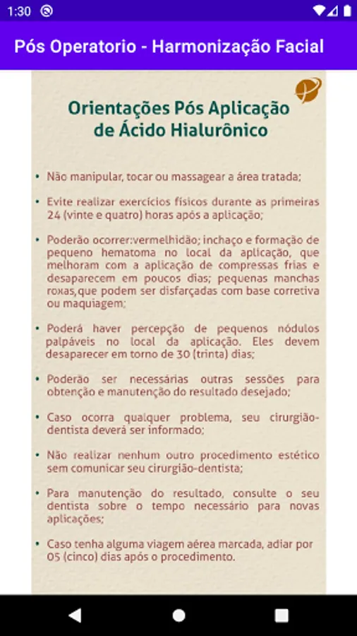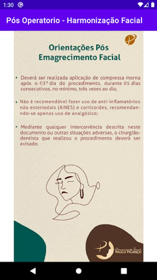 An app created to assist patients with all the necessary post-operative procedures, care and needs to be met after the procedures performed in the clinic.