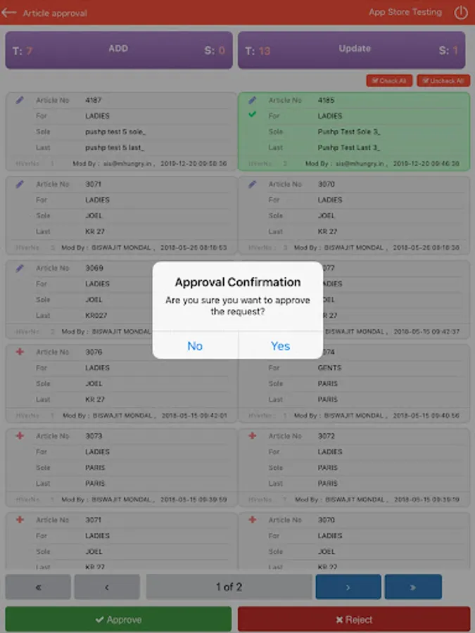 • View pending approvals based on module and permission you have from your organization.