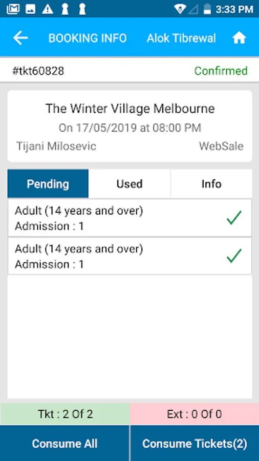 This app is used for scanning the ticket at the time of entering the event area. After scanning the ticket it will marked the ticket as consumed.