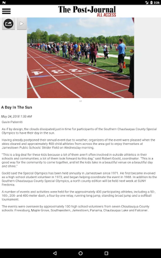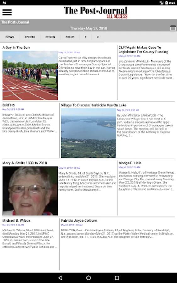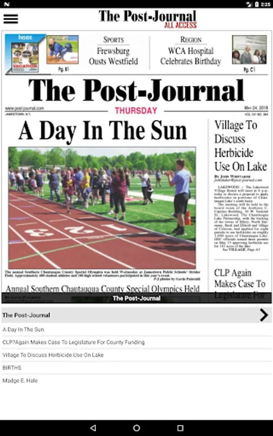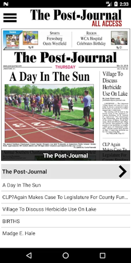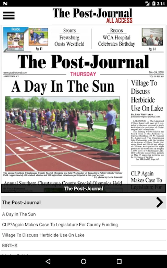 Stay on top of news from Jamestown and surrounding areas by receiving the full print version of The Post-Journal on your Android device. Every page of every edition is delivered to your device. The Post-Journal is the best source for local and national news, sports, weather, and features in the Jamestown and Chautauqua County area. Download the app to view the printed pages of the newspaper or read headlines and stories along with related photos in a built-in story viewer.