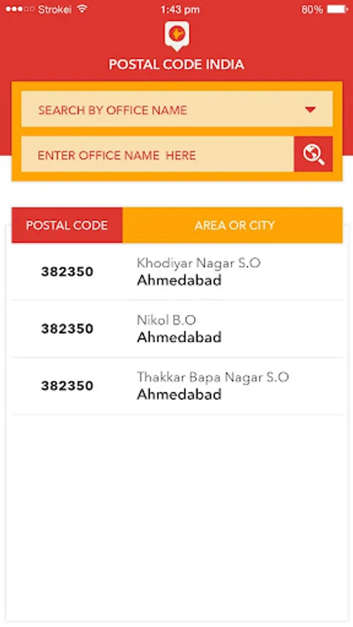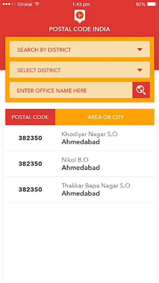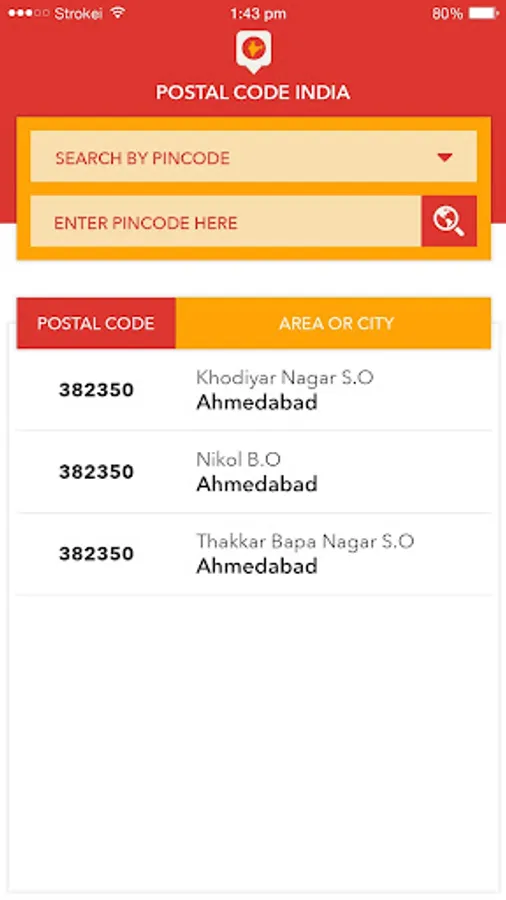By using this app you can find list of pincodes of India. The application provides easy way to search pincodes and get details of that area. You can search by pincode, district or office name.