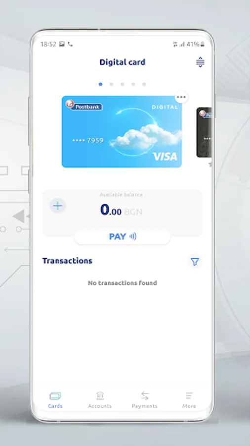 • Make contactless (NFC) payments on POS in Bulgaria and whole world with each of your Postbank cards
