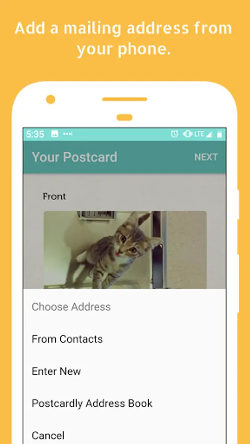Don't have your device with you? No problem! Every time you send someone a postcard, we create a unique @postcardly.com email address for that recipient, linked to their physical mailing address.