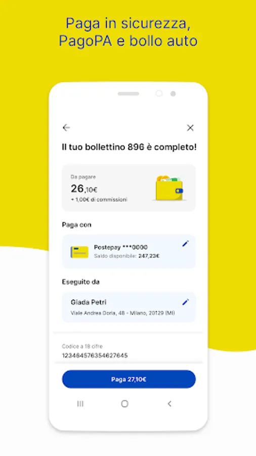 • Pay securely: frame the code to be scanned and pay bills, car and motorcycle tax and PagoPA payments
