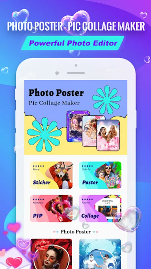 Photo Poster - Pic Collage Maker is a beautiful picture editing app. You can combine ordinary photos into beautiful collages. There are also beautiful poster features at your disposal.
