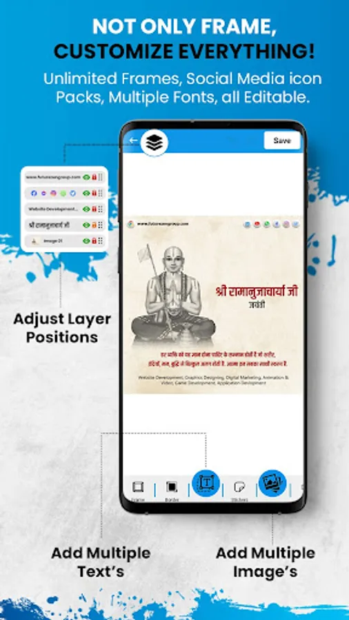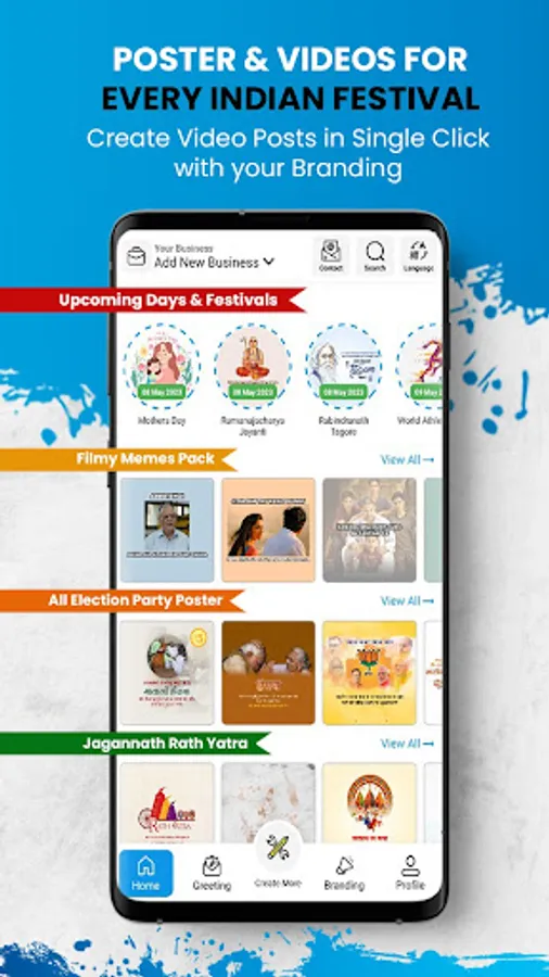 ❖Content available in 10+ Regional languages like Marathi, Hindi, Gujrati Poster, Telugu, Tamil, Bengali poster maker