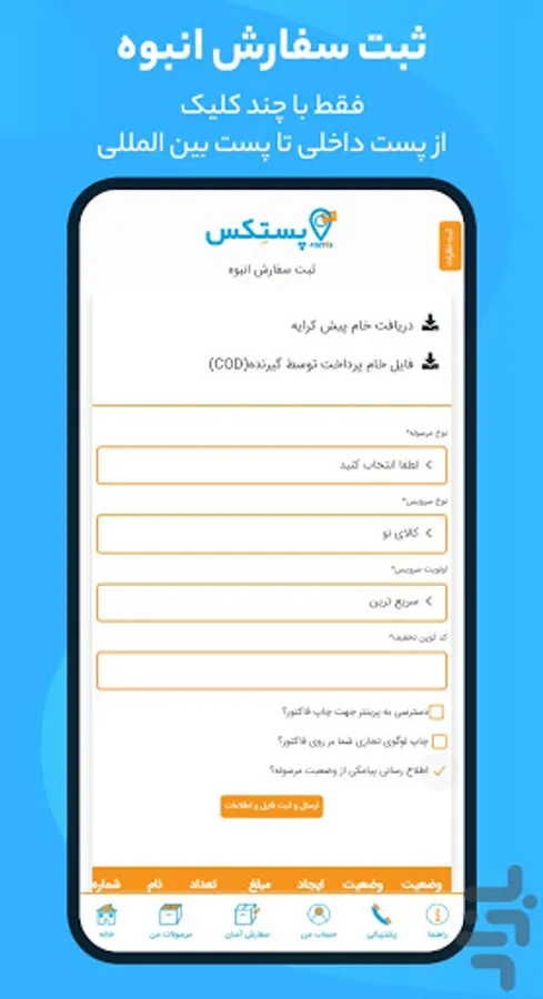 o امکان بسته بندی و پرینت توسط جمع آور