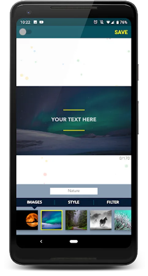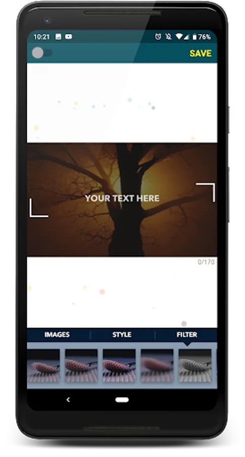 Save time editing photos and quickly make a stunning and unique post with customizable background images, different styles and filters.