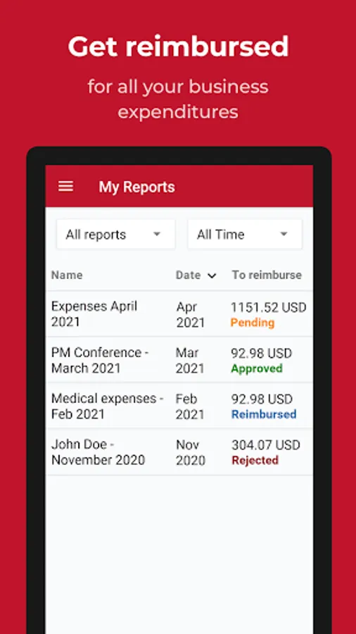 4. View the statuses of expense reports, whether managers have reviewed and approved them or not.