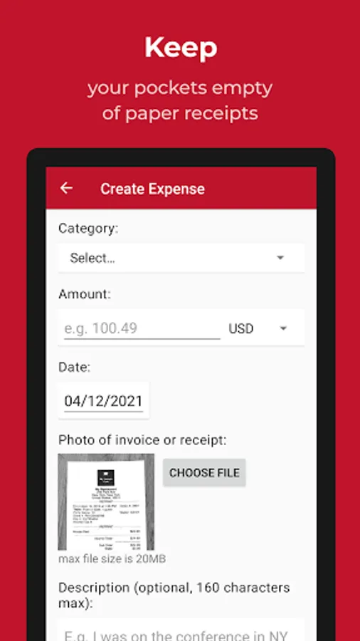 2. Create reports and add photos of receipts to them: forget that you must store all receipts, tickets, tax reports to share them to the bookkeeping;