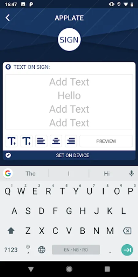 Add text to your Applate. With this app, you can manage your APPLATE. Add or delete text.
