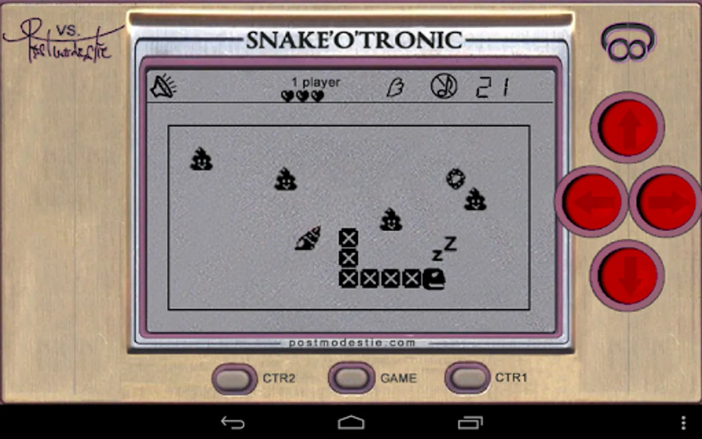 - 16 different levels to unlock: various obstacles, pooping snake, portals, enemies, water..