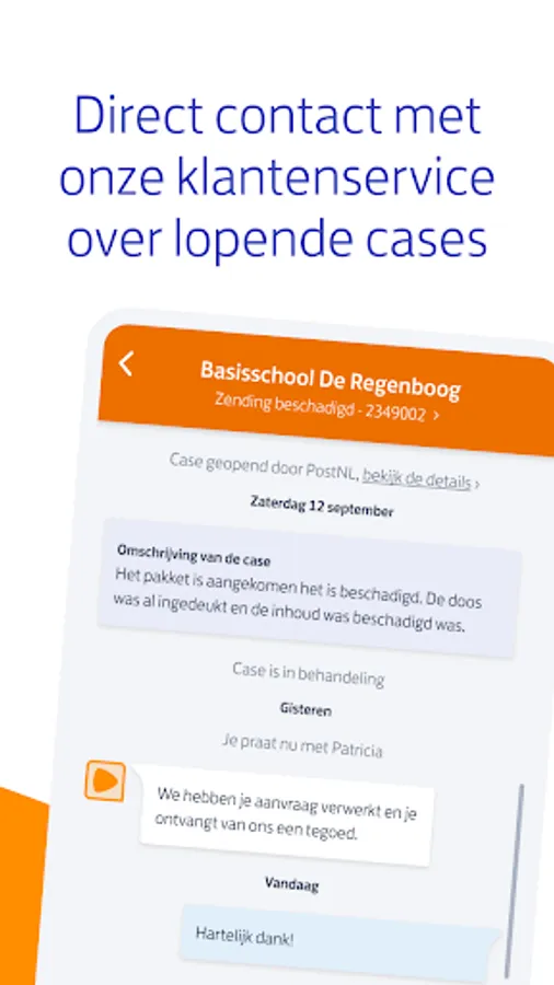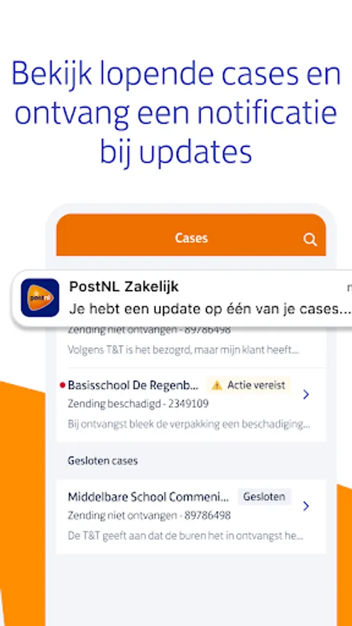 Is something wrong with a package? In the app you will find an overview of all your current and closed cases, and you can contact our business customer service directly. Is there an update on a case? Turn on your notifications and you will automatically receive a message. Keeping a grip on your packages becomes very easy this way!