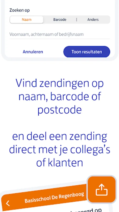 With our business app you always have full insight into your sent packages. Search packages by name, barcode or zip code, check their status and easily share the details with your customers or colleagues.