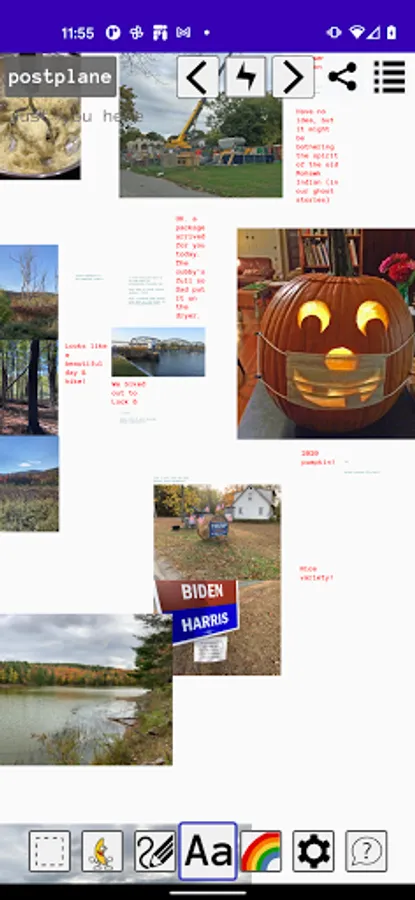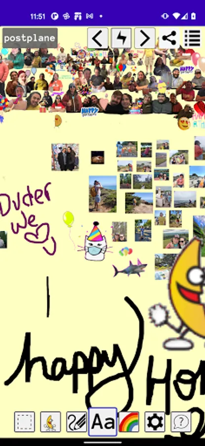 Postplane is a digital whiteboard that you can use to express yourself and collaborate with others. The whiteboard contents are visible across Android, iOS, and web versions to facilitate instantly synchronized collaborative communication wherever you may be with whatever smartphone, tablet, or computer you may have at the time.