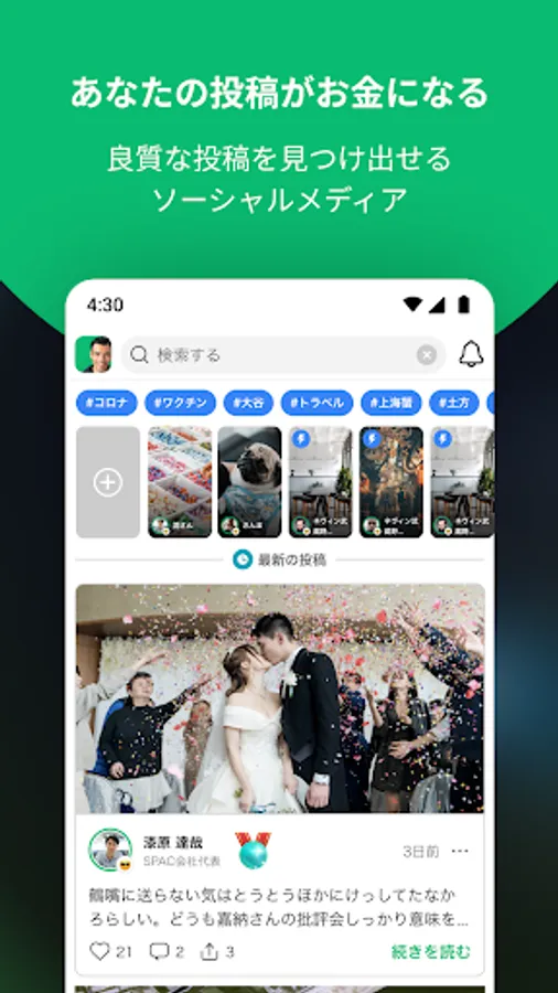 今のホットトピックや最新情報を発見できる。バッジシステムによって高く評価された投稿を簡単に見つけることができます。
