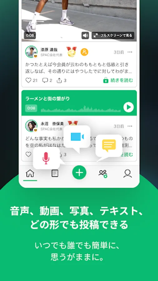 音声・動画・画像・テキスト、好きな形で表現ができて収入を得ることができます。