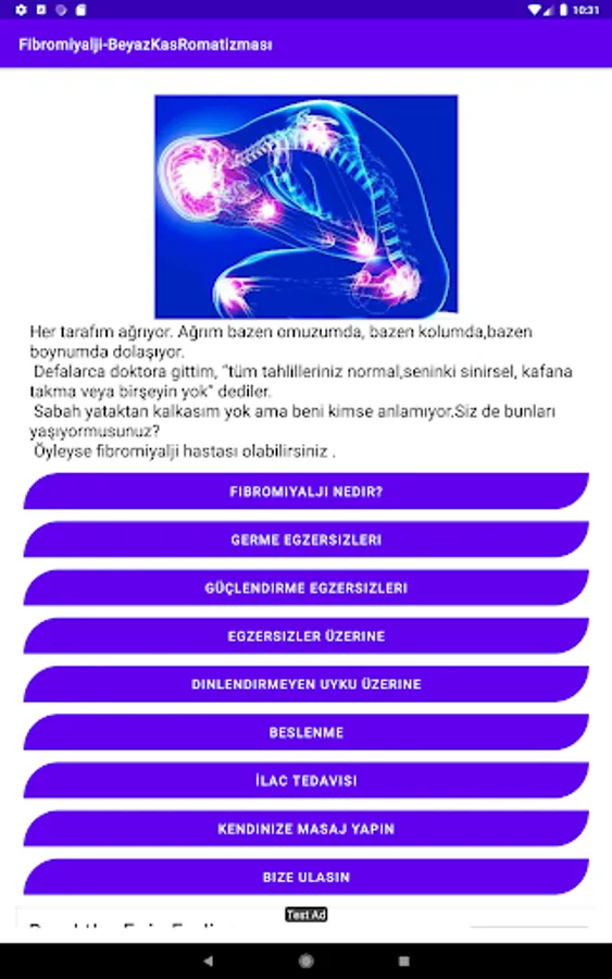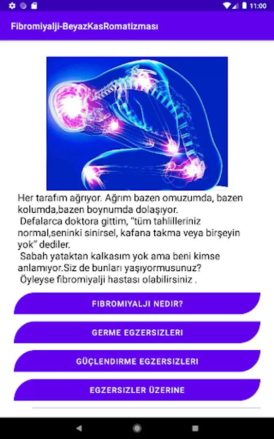 Bu uygulamamızda alanında uzman doktorlarımızla fibromiyaljinin nedenlerini,nelere dikkat etmemiz gerektiğini,egzersizleri ve beslenme önerilerini sizlerle paylaşıyoruz.Tamamen ücretsiz.