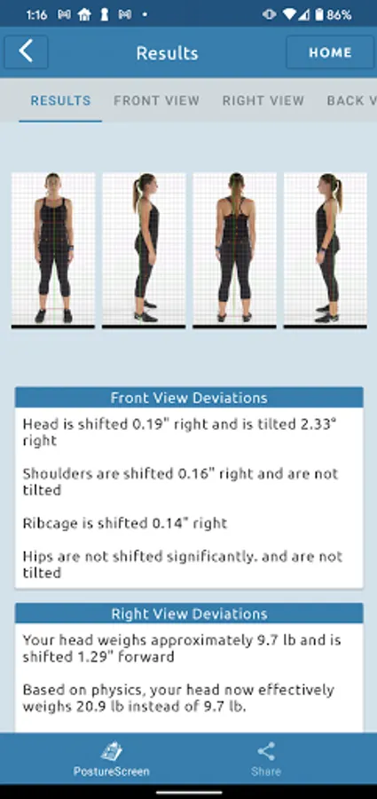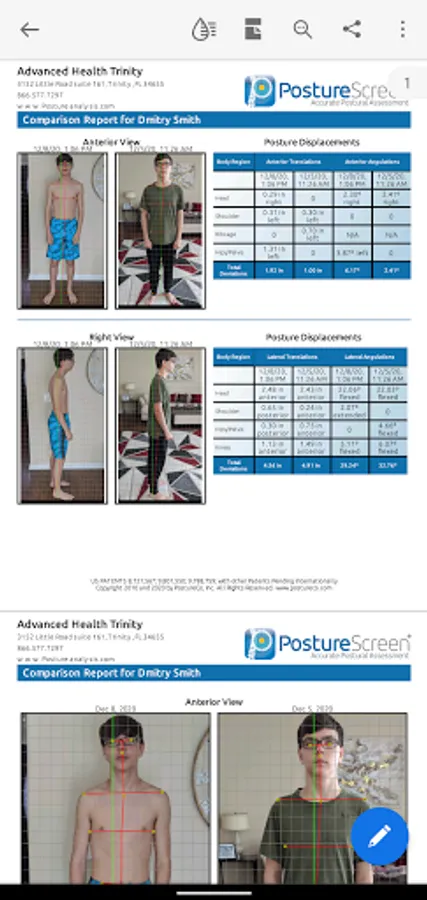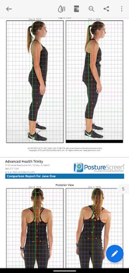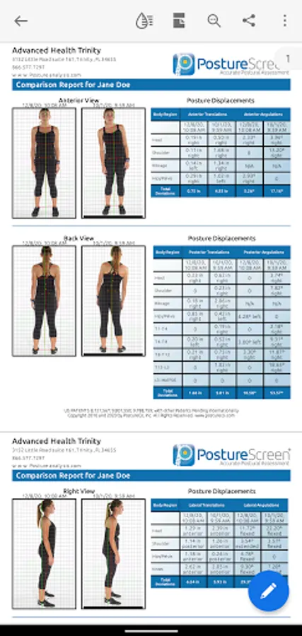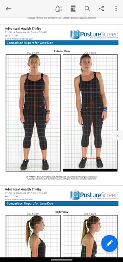 PostureScreen provides you with the tools to objectively and efficiently evaluate the posture for your patients/clients. You can generate clinical-type reports for your assessment, as well as personalized patient/client friendly educational reports, comparison reports, and trend progress reports to help understand their results and track their progress.