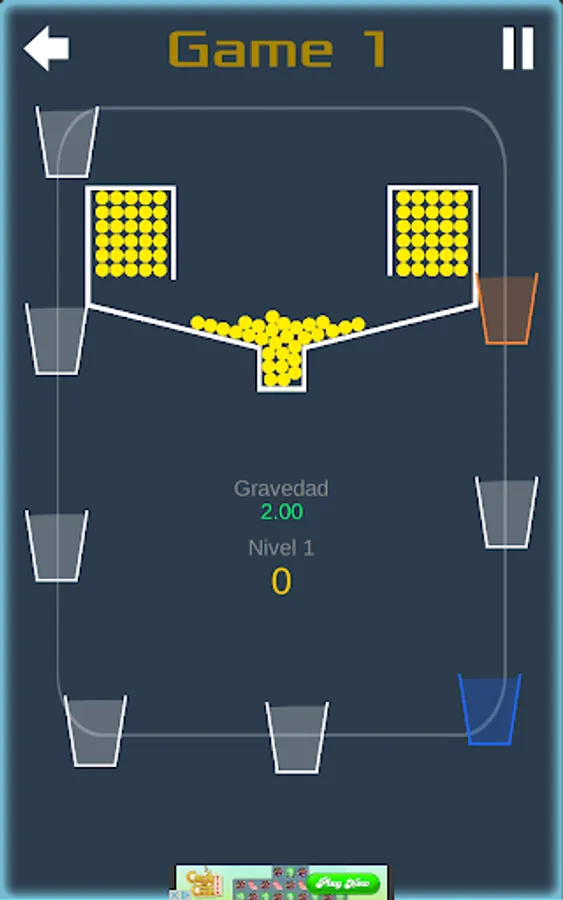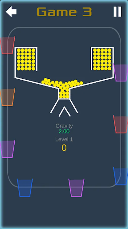 The goal of the game is to catch falling balls with moving cups. Tap on the screen to release balls and earn points by catching the balls.
