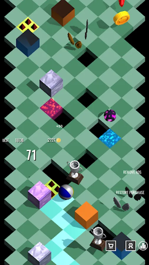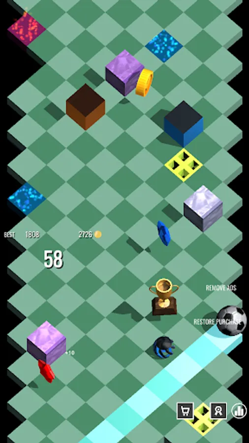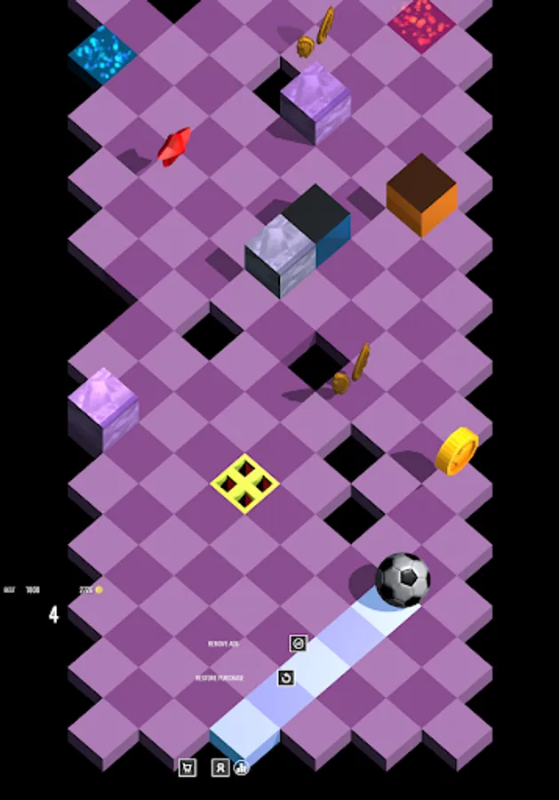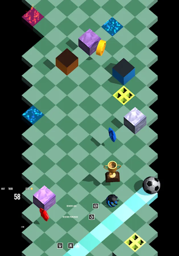 Rolly Soccer Balls is a single tap 3D arcade game played on a floating platform. Earn points by collecting trophies and other valuable items while avoiding traps, hazards, obstacles, and pits.