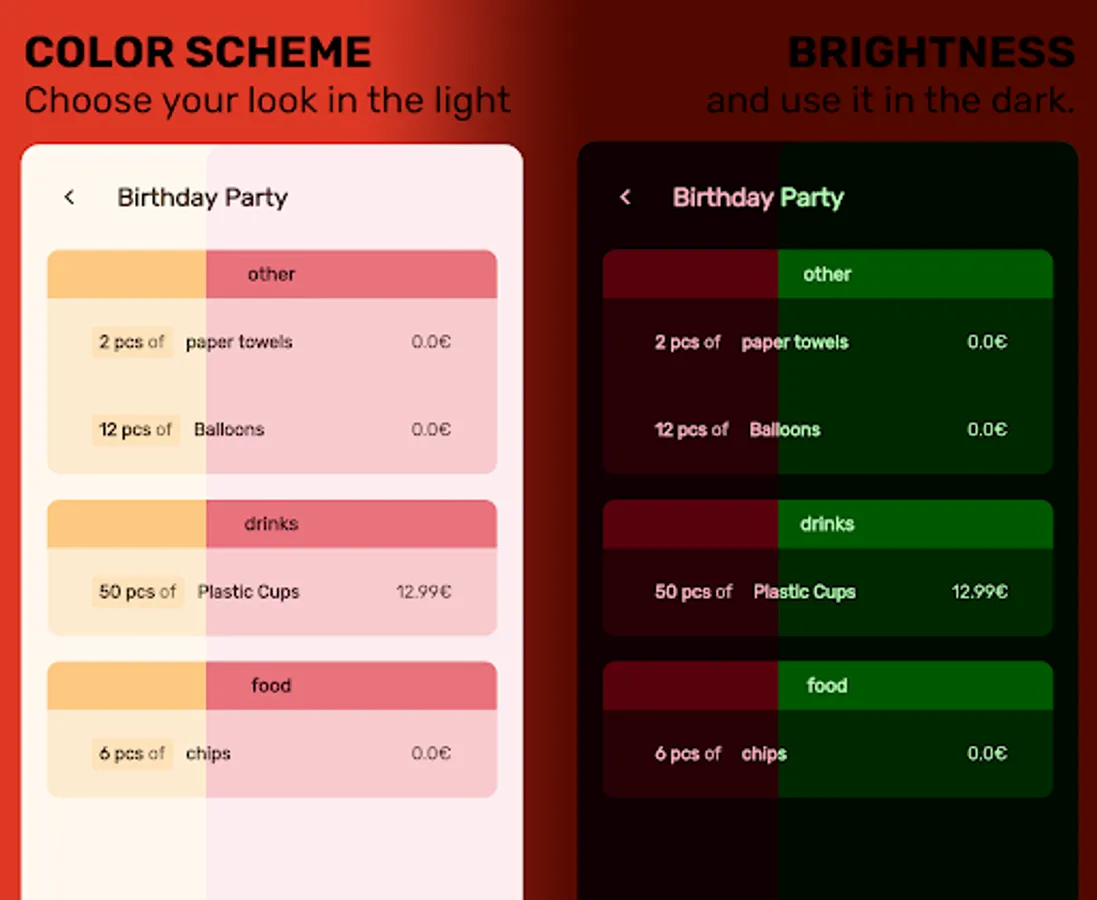 ShopTogether features a modern, sleek design allowing you to pick from multiple color schemes from light to dark themes!