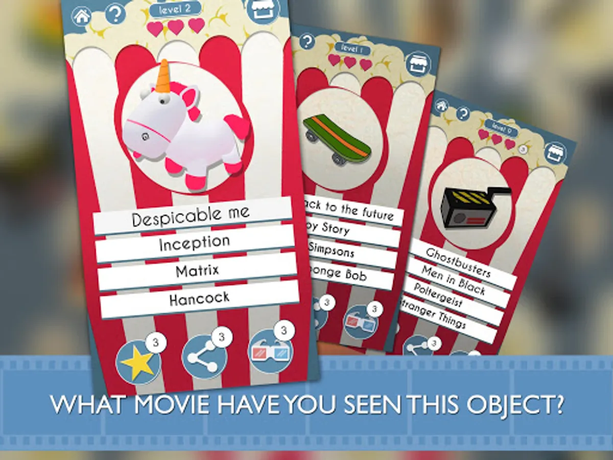The game is simple but enjoyable: When you start playing an object from a film will show and you will have to select the correct answer from 4.