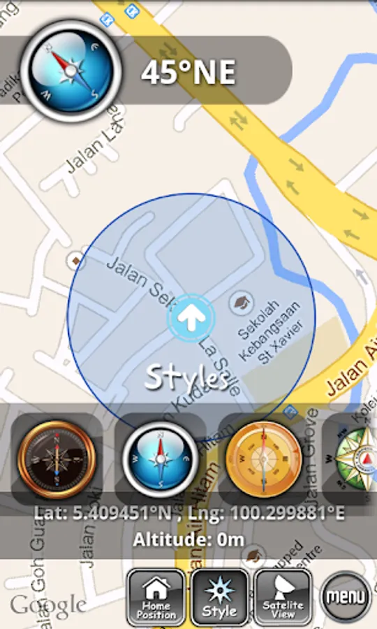 Map Compass comes with high definition graphics and nice user interface design. You can also customize your application view with 5 cool compass design, as shown in preview.