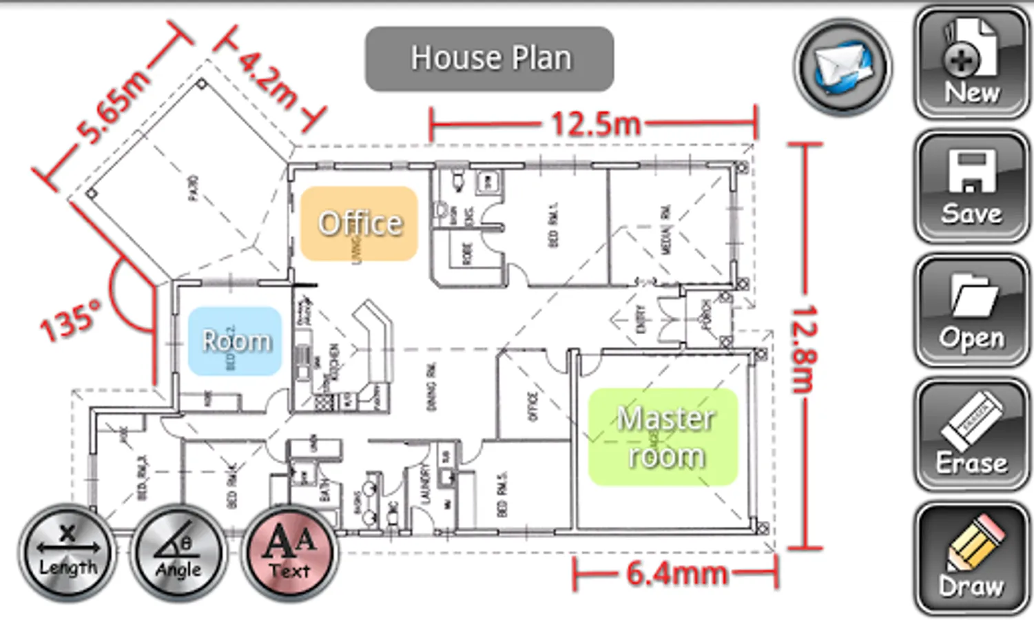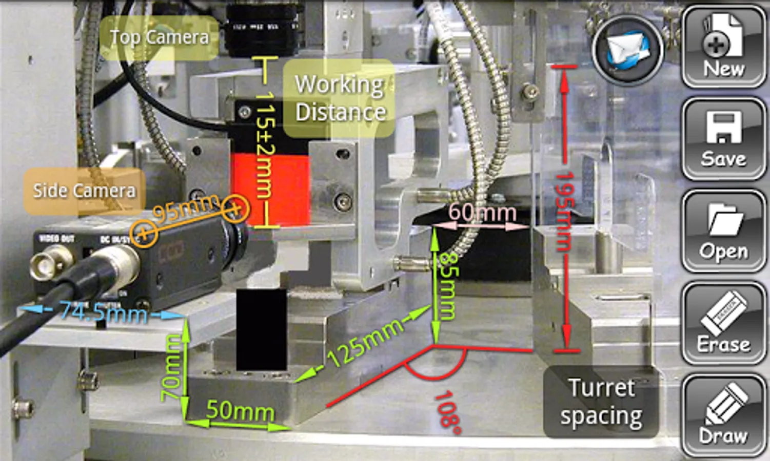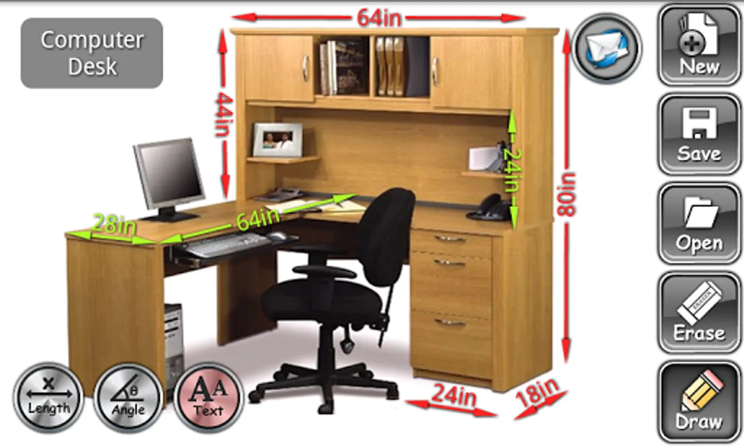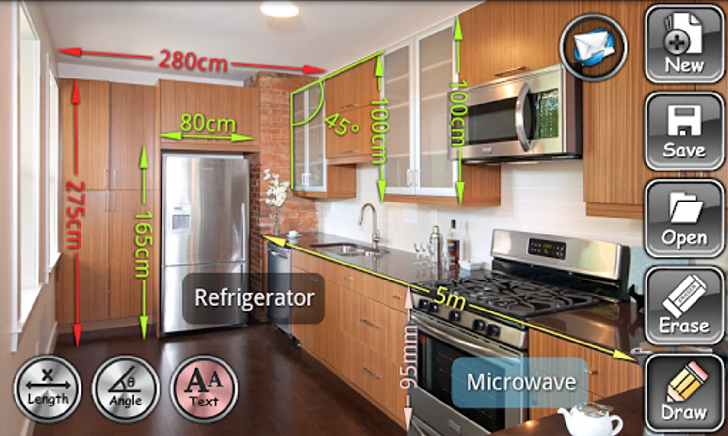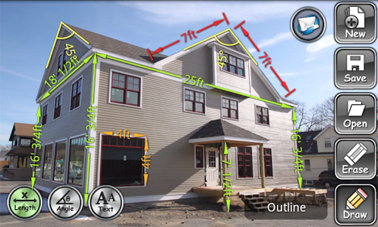 It is super easy to use. Just take a photo from camera or import photo from gallery and directly draw measures (length, angle, text or notes) on it.