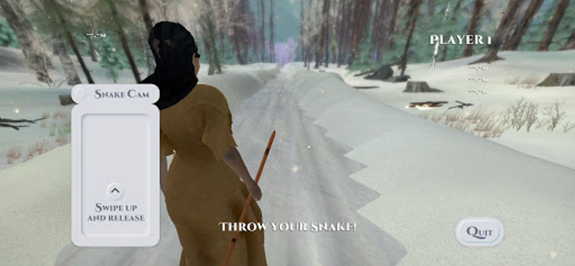 In zhoshke’nayabo, you play as one of two characters, choose between multiple colorful "snakes", and compete to throw the furthest.