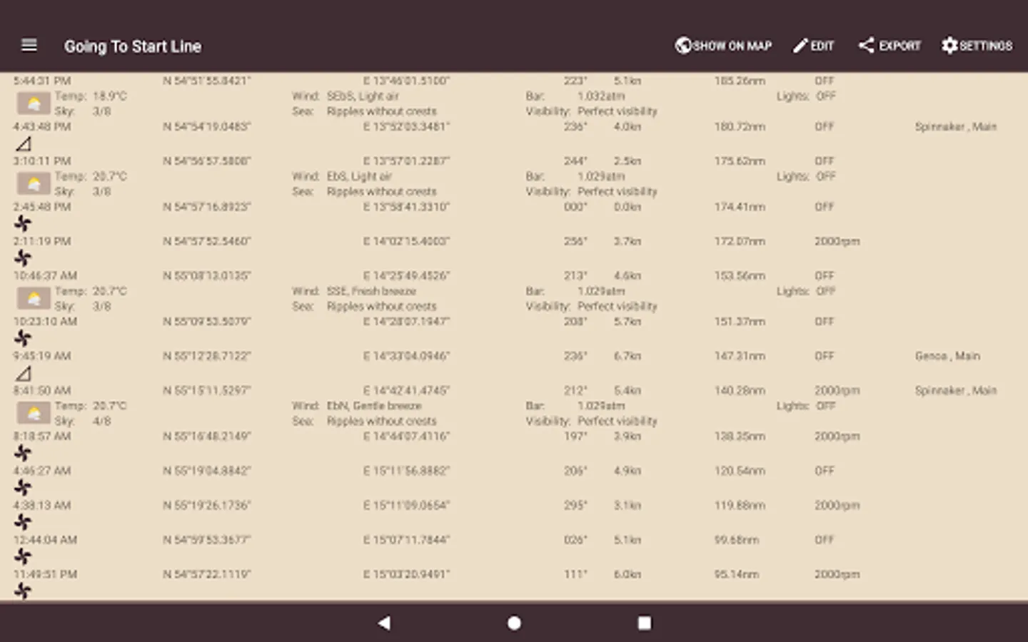 The Sailing Expert application, a swiss knife for sailors, supports navigation, regatta, helps sailors to keep their logbook, shows weather forecast, keep maintenance log for different boats and more.