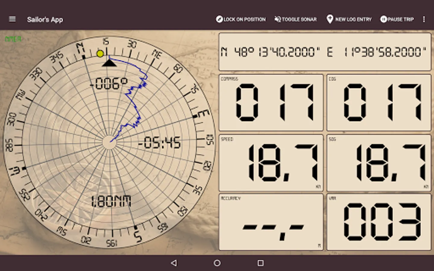 The application will tell you the target course or alert if you are off course, calculate the remaining distance and estimated time of arrival (ETA).