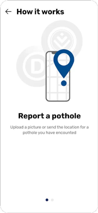 The app allows you to log a pothole using Google Maps to locate the exact position (street name and number) of the pothole.