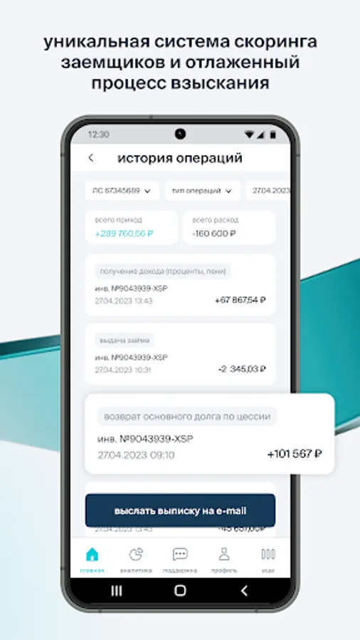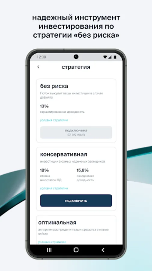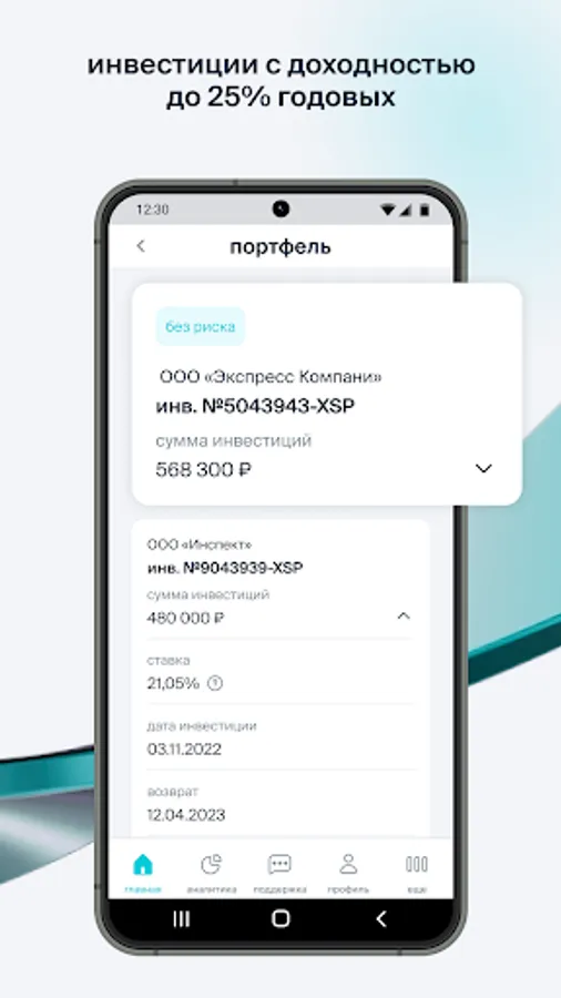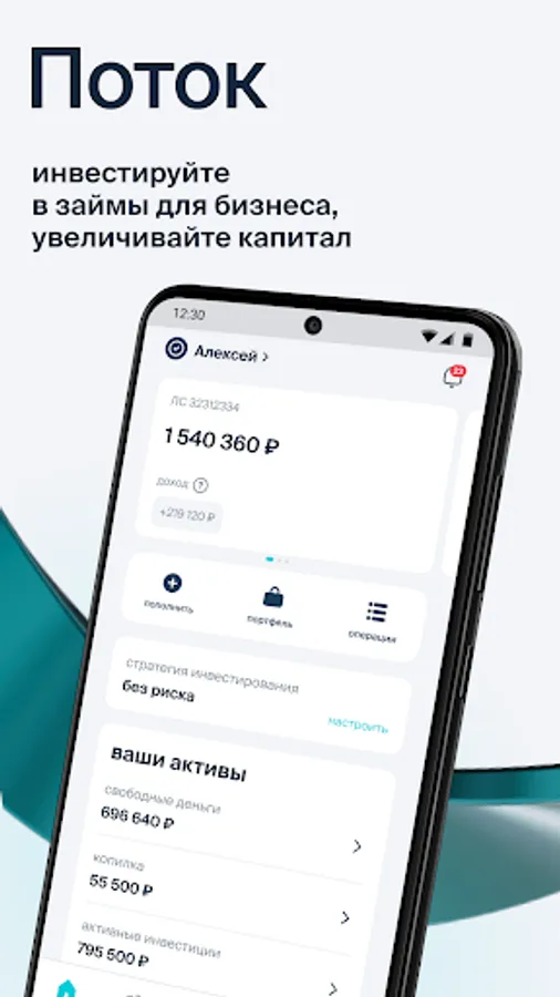 The Potok mobile application is a convenient digital assistant that gives easy access to investing in loans to companies that have passed a thorough selection. We provide low risks for investors due to a high-quality borrower scoring system based on artificial intelligence.