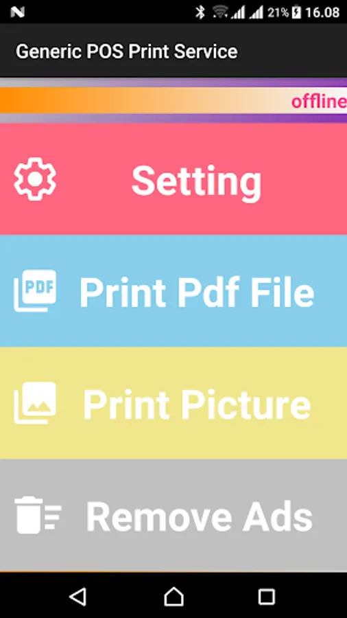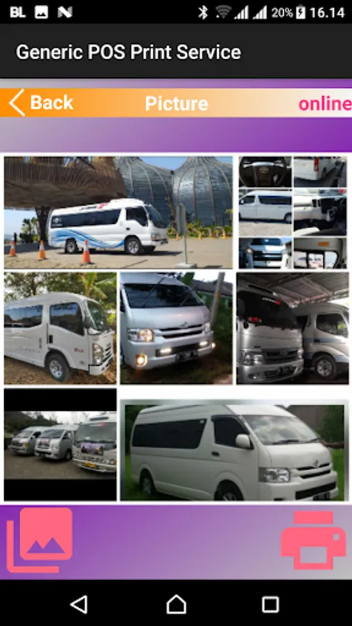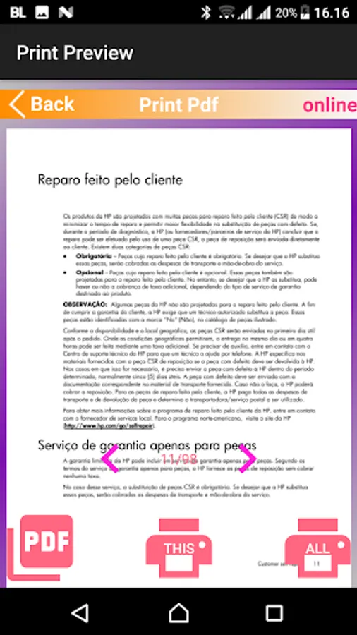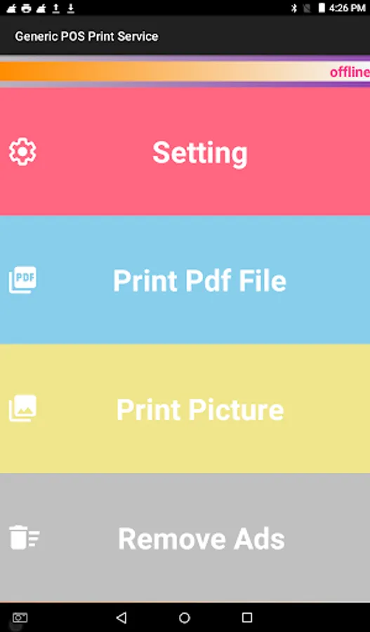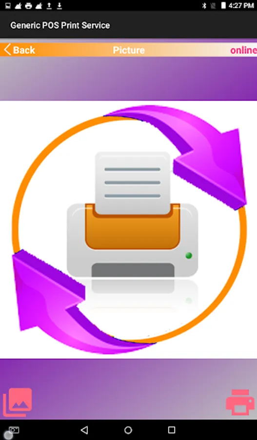 The application also allows you to print images from gallery files, print pdf documents from the device storage directory.