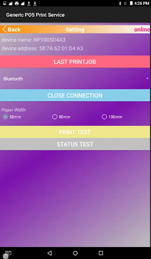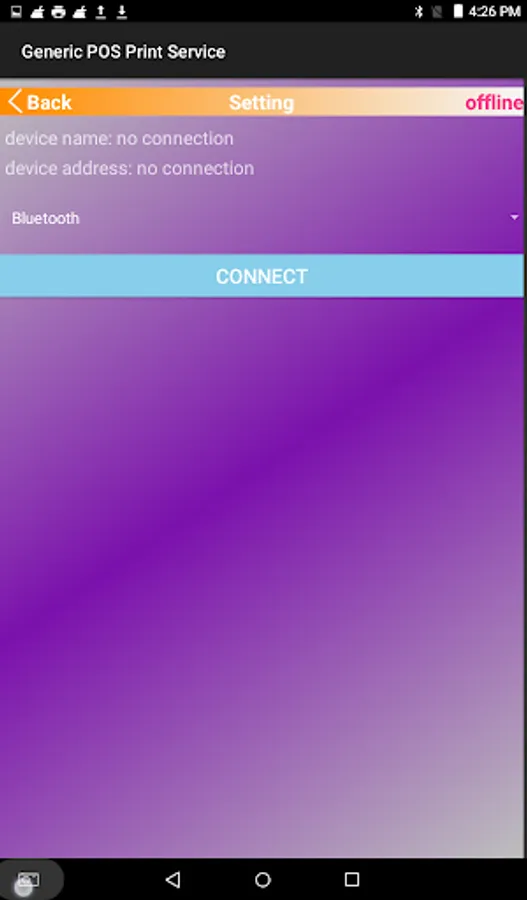 3. To start printing, first activate the device connection with the printer, for example a Bluetooth (the printer is first paired with the device.)