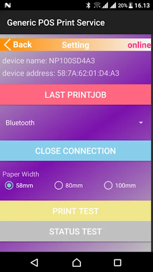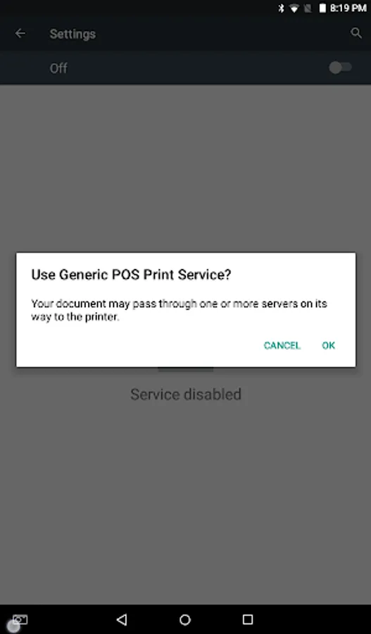Go to Settings> Device connection> Printing> Select "Generic POS Print Service" Print Service> Enable "POS Printer"